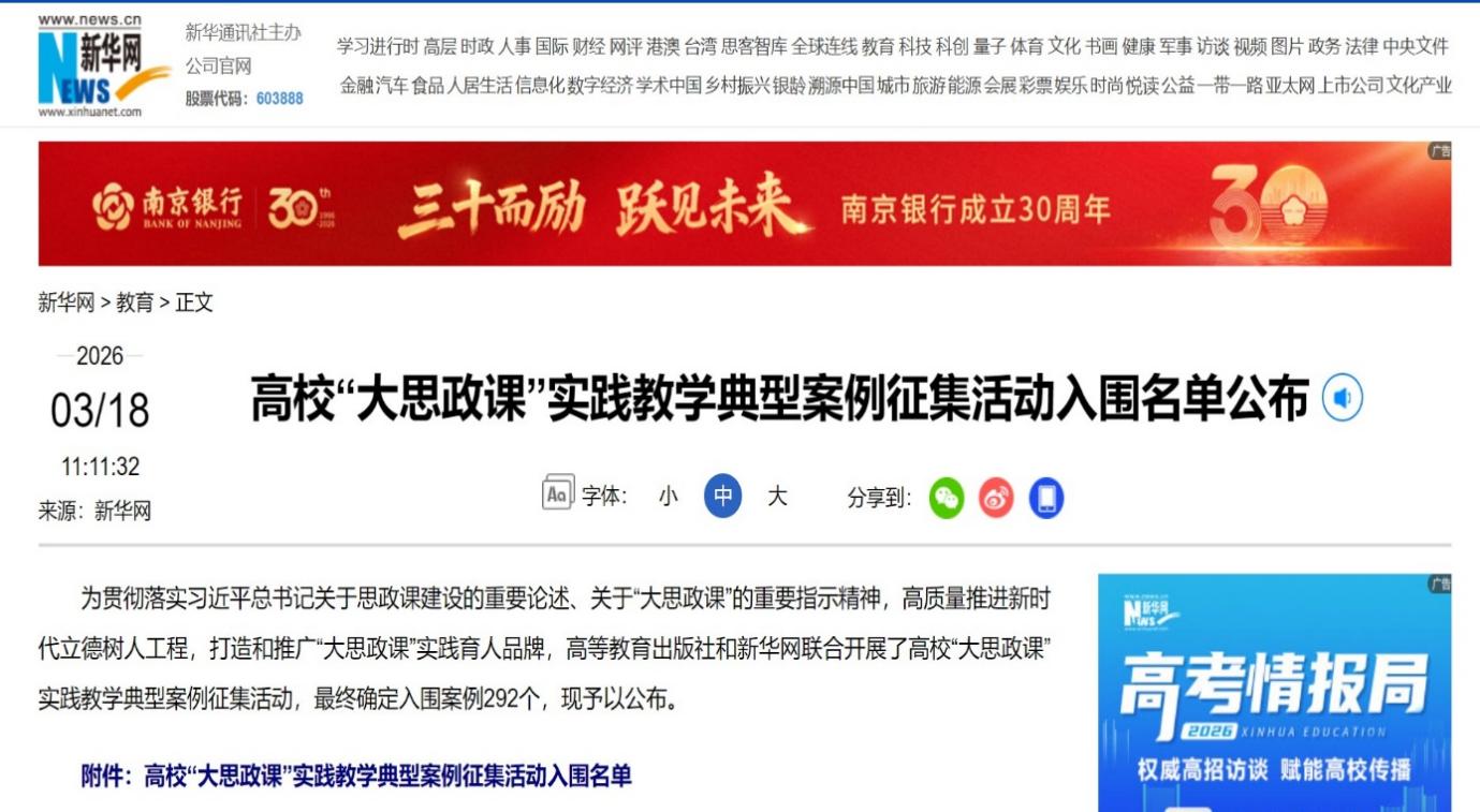 喜讯 | 我校教学案例成功入选全国高校“大思政课”实践教学典型案例